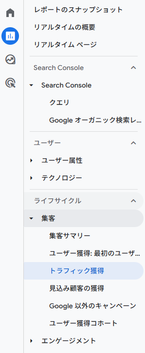 - 「集客」→「トラフィック獲得」をクリック